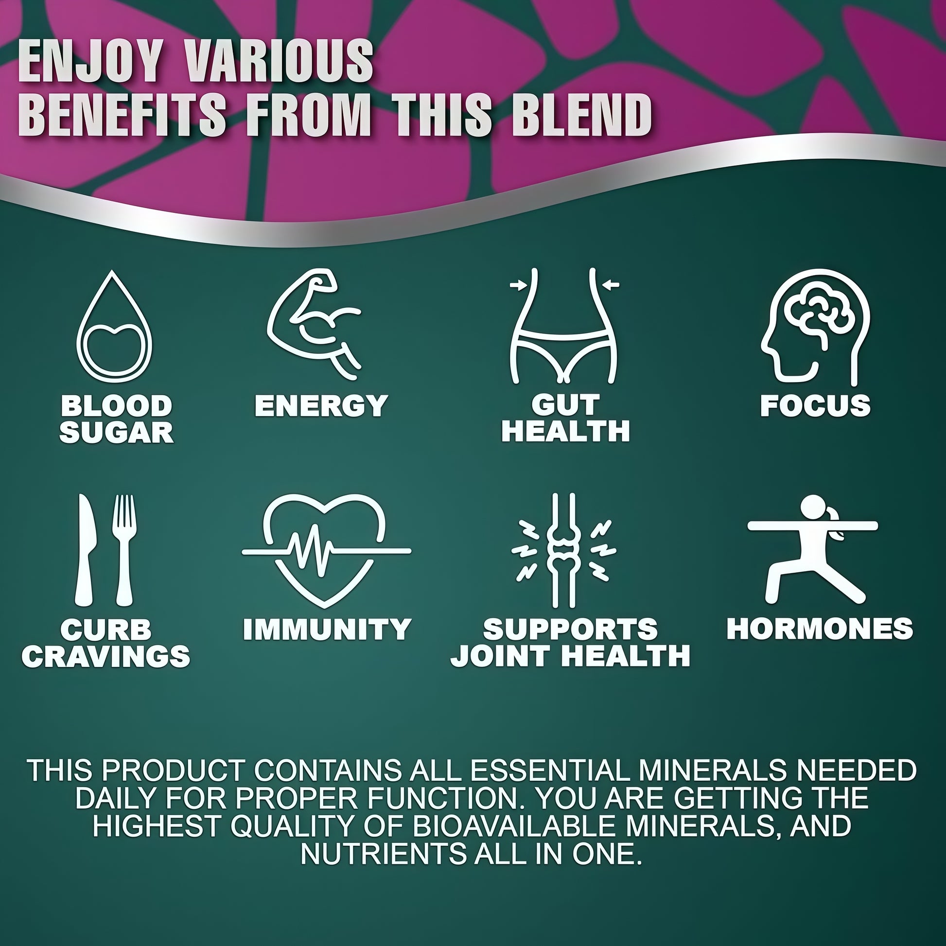 Over 70 ionic trace minerals + chelated macro & micro minerals